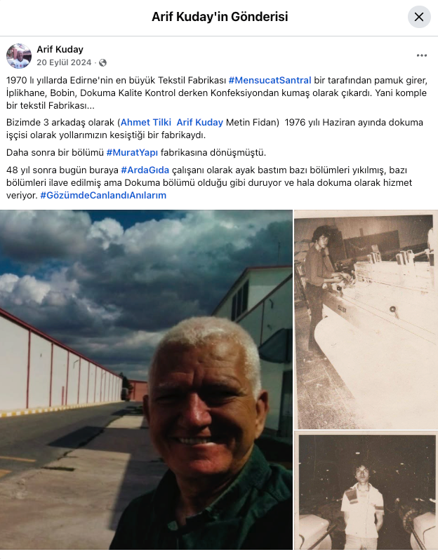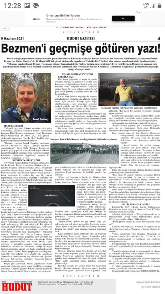 Daha önce (sanırım 2021 yılı idi) Edirne Hudut Mensucat Santral ve benim hakkımda geniş bir yazı yazmıştı. Ben de bu yazı için “Okuyun, gazeteci İsmail Demiray yazmasını biliyor. Bezmenleri değil, Türkiye tarihini yaşayacaksınız” demiştim.